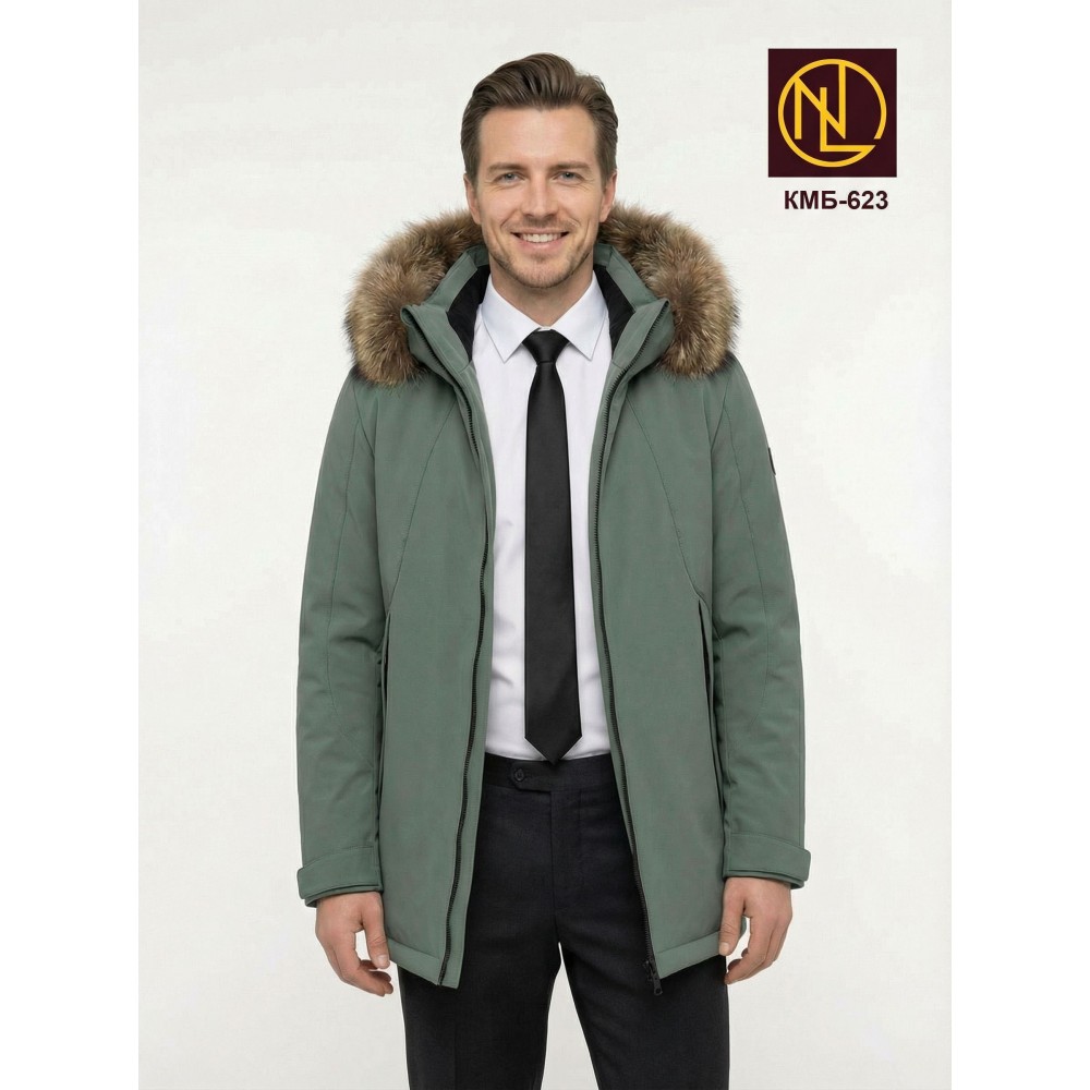 Куртка мужская с капюшоном и мехом енота ЗИМА 2026 арт. КМБ 623